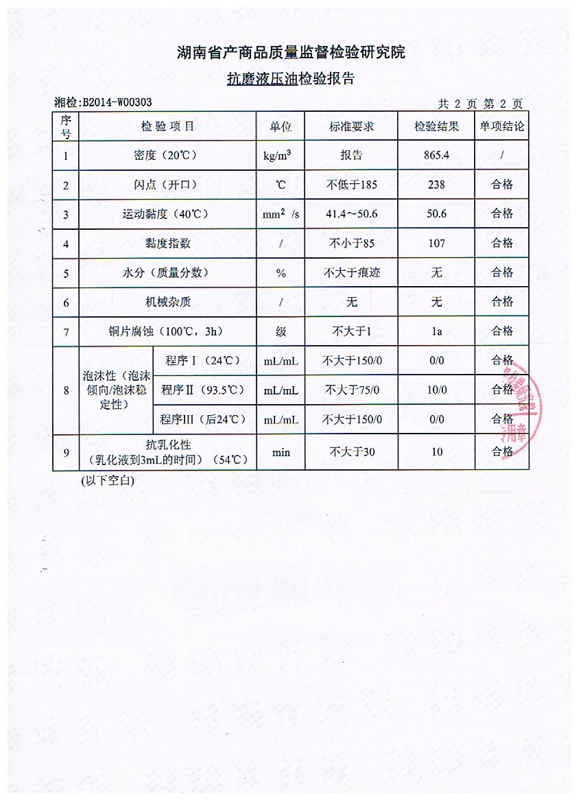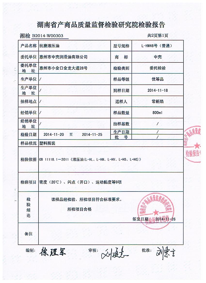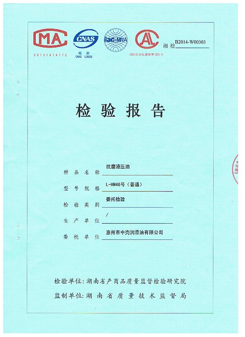 1、L-HM46号抗磨液压油检验报告