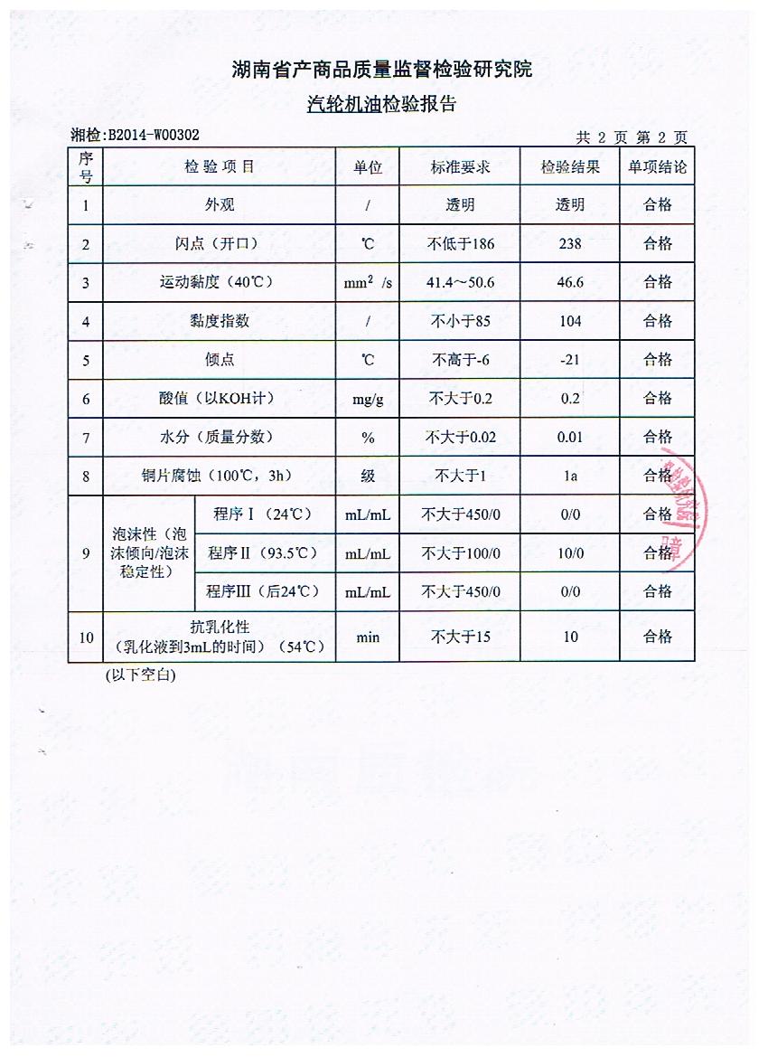 2、L-TSA46号汽轮机油检验报告